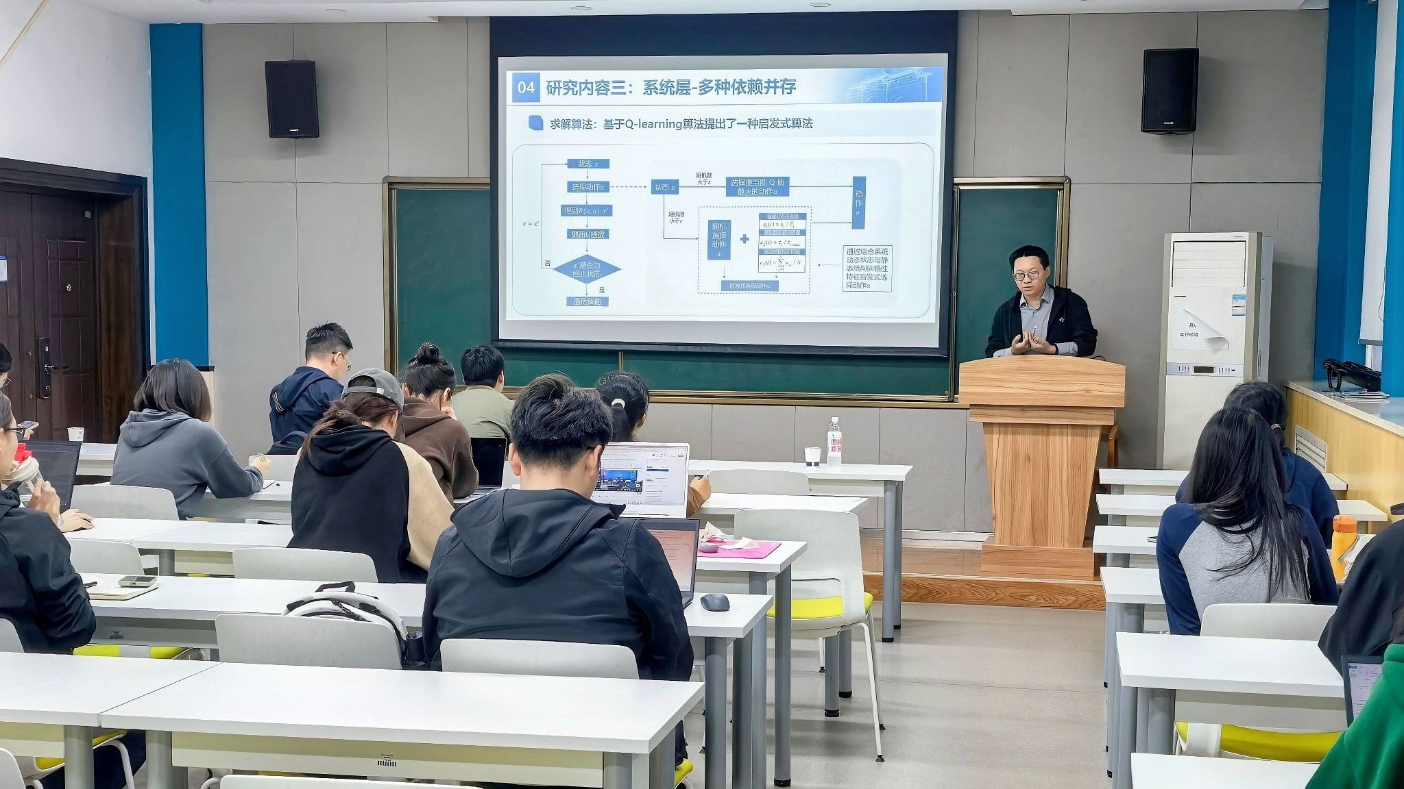 Professor Xiao Hui, drawing on his extensive research experience in system maintenance management and combining cases of high maintenance costs in nuclear power plants and aviation equipment, pointed out that system maintenance faces three core challenges: limited resources at the layer, inaccurate detection at the information layer, and the coexistence of multiple dependencies at the system layer. Additionally, corresponding solutions were proposed for each challenge, including building relevant models to optimize component and spare parts management, accurately inferring component status, and proposing a heuristic strategy based on Q-learning. Experimental results showed that the proposed strategies could significantly reduce long-term maintenance costs compared to traditional methods. Professor Xiao Hui clearly explained the professional content through case studies and research practices, making it highly enlightening.