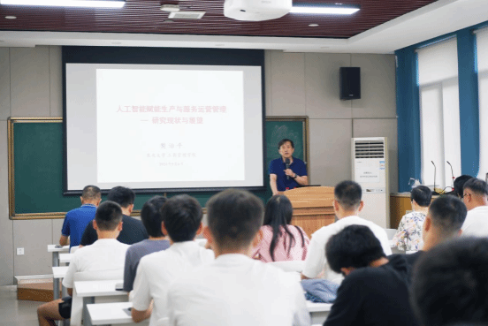 First of all, Professor Fan Zhiping introduced the relevant concepts of artificial intelligence, including its definition, core technologies, main development stages and major types, and further demonstrated the application scenarios of artificial intelligence in intelligent manufacturing, smart retail, smart logistics, smart finance and other fields. Next, Professor Fan pointed out that the academic community attaches great importance to research on artificial intelligence, and summarized the latest progress of existing research for the teachers and students present from two aspects: empirical research related to “artificial intelligence + management science” and research related to operations management against the backdrop of artificial intelligence. Finally, based on the current research status, Professor Fan put forward the research challenges and prospects brought by artificial intelligence, including the key factors affecting enterprises' adoption of artificial intelligence and the privacy protection issues caused by artificial intelligence, which triggered in-depth reflection among the teachers and students present.