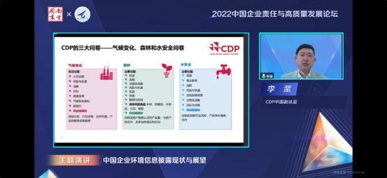 Li Fei, Deputy Director of CDP China, presented The Current Situation and Prospects of Environmental Information Disclosure of Chinese Enterprises, demonstrating the achievements of domestic enterprises in environmental information disclosure amid the surging tide of carbon neutrality.