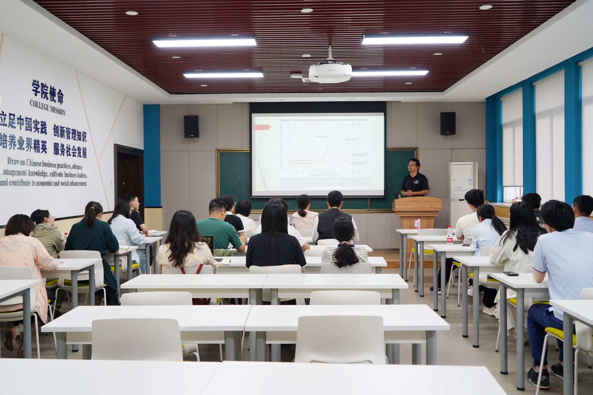 During the lecture, Professor Sun systematically expounded on the application of quasi-experimental research methods in the field of management. He presented his discussion from three progressive dimensions: "conceptual definition - research value - design methods", answering the questions of "what is a quasi-experiment", "why conduct quasi-experiments", and "how to design quasi-experiments". He also conducted a detailed analysis of the characteristics and key assumptions of different design types. Finally, Professor Sun proposed three forward-looking topics: (1) the applicable boundaries of quasi-experimental methods in researching emerging management phenomena; (2) innovations in methods for testing key assumptions in complex organizational environments; (3) the reconstruction of ethical norms for quasi-experimental research in the era of big data.