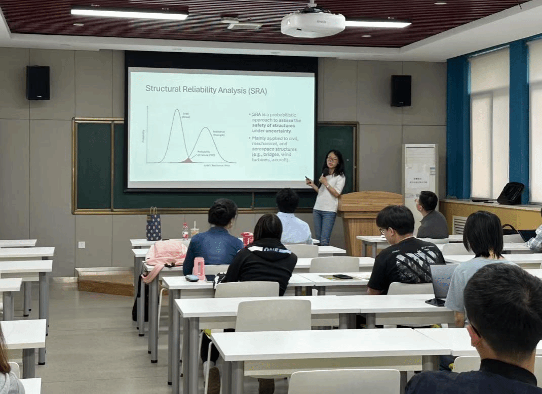 Dr. Zhang Mimi's lecture centered on the parallelized analysis of structural reliability. This research focuses on probabilistic methods for evaluating the safety of structures under uncertain conditions, with primary applications in civil engineering, mechanical engineering, and aerospace structures. Dr. Zhang shared in detail the Bayesian learning framework, parallel adaptive reliability analysis based on penalized learning functions, and her latest research on functional data.