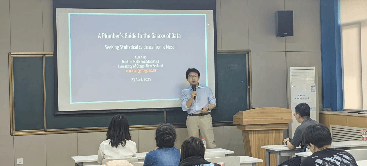 On April 23, 2025, at the invitation of the School of Management, Dr. Xun Xiao, Lecturer in the Department of Mathematics and Statistics at the University of Otago, New Zealand, and Dr. Mimi Zhang, Assistant Professor in the School of Computer Science and Statistics at Trinity College Dublin, Ireland, respectively delivered academic lectures titled "A Practical Guide to the Data Universe: Finding Statistical Evidence Amidst Chaos" and "Parallel Adaptive Reliability Analysis Based on Penalized Learning Functions" in Lecture Hall 214. This event marked the 5th session of the 2025 Overseas Lecture Series hosted by the School of Management. Chaired by Associate Professor Chenglong Li, it was attended by young faculty members and graduate students from the school.