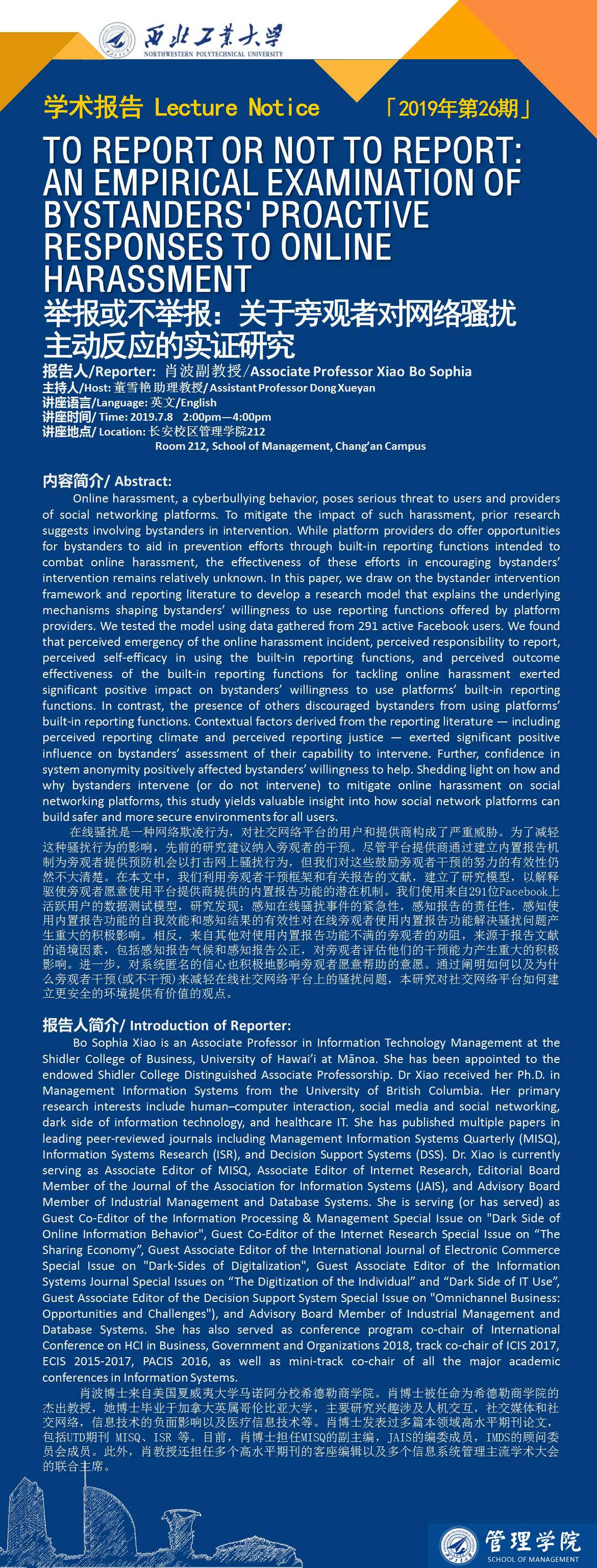 [Lecture Notice]To Report or Not to Report: An Empirical Examination of Bystanders' Proactive Responses to Online Harassment