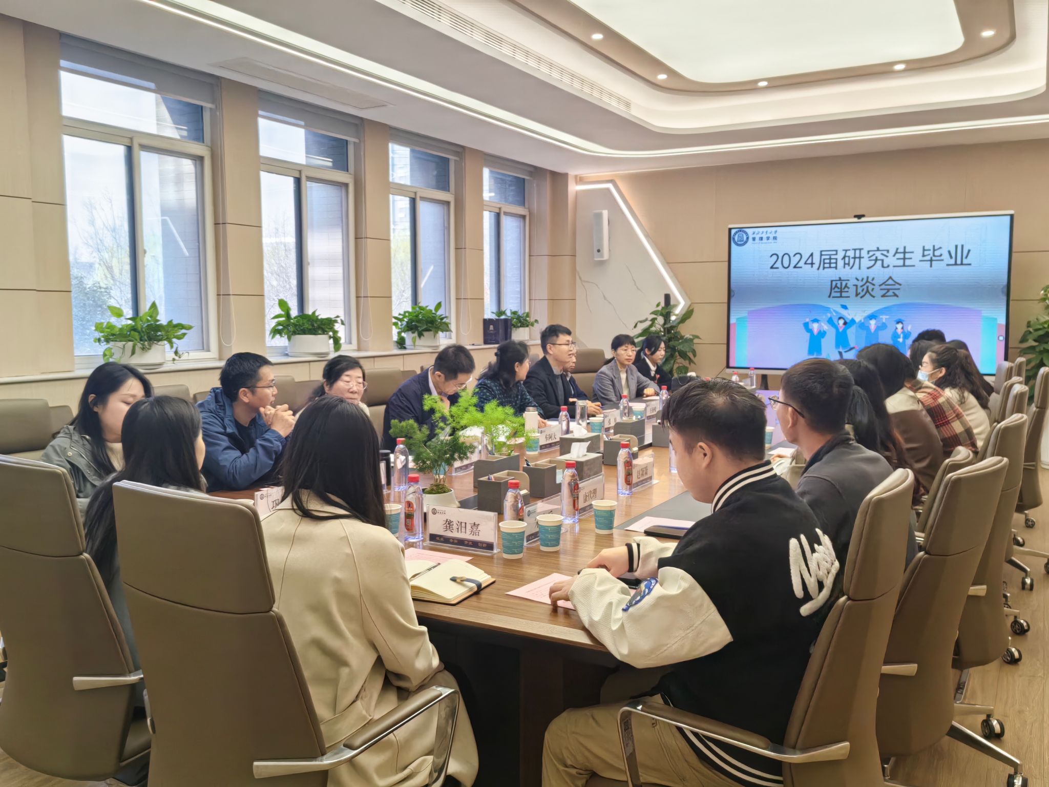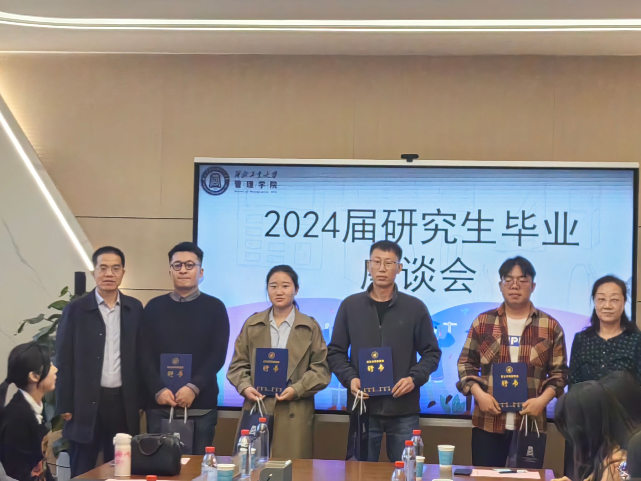 On the morning of March 22, the 2024 Graduate Graduation Symposium of the School of Management was held in Conference Room 212 of the School. Che Ada, Dean of the School of Management, Zhang Shuang, Secretary of the Party Committee, Wang Haixiao, Deputy Secretary of the Party Committee, department directors Zhang Yali, Xue Jianwu, Hong Zhaofu, Chang Yu, graduate counselors Gong Mujia, Yuan Yuan, Gong Xue, graduate teaching secretary Niu Jiale, and 10 graduate representatives gathered together to witness growth and achievements at the symposium. The meeting was presided over by Wang Haixiao, Deputy Secretary of the Party Committee.
