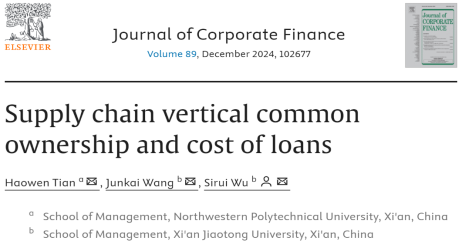 Recently, the research work Supply Chain Vertical Common Ownership and Cost of Loans, with Associate Professor Tian Haowen from the School of Management as the first author, has been published online in the Journal of Corporate Finance. As a well-recognized high-level international journal in the field of corporate finance, the Journal of Corporate Finance is an ABS Four-Star Journal and a JCR Q1 Journal (with an impact factor of 7.2).