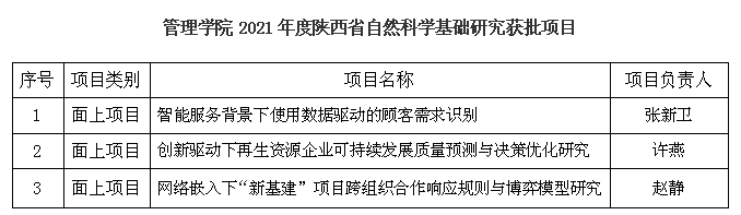 Recently, the Shaanxi Provincial Department of Science and Technology announced the evaluation results of the 2021 Shaanxi Natural Science Basic Research Program Projects. Our school has secured approval for 3 General Program Projects, namely: