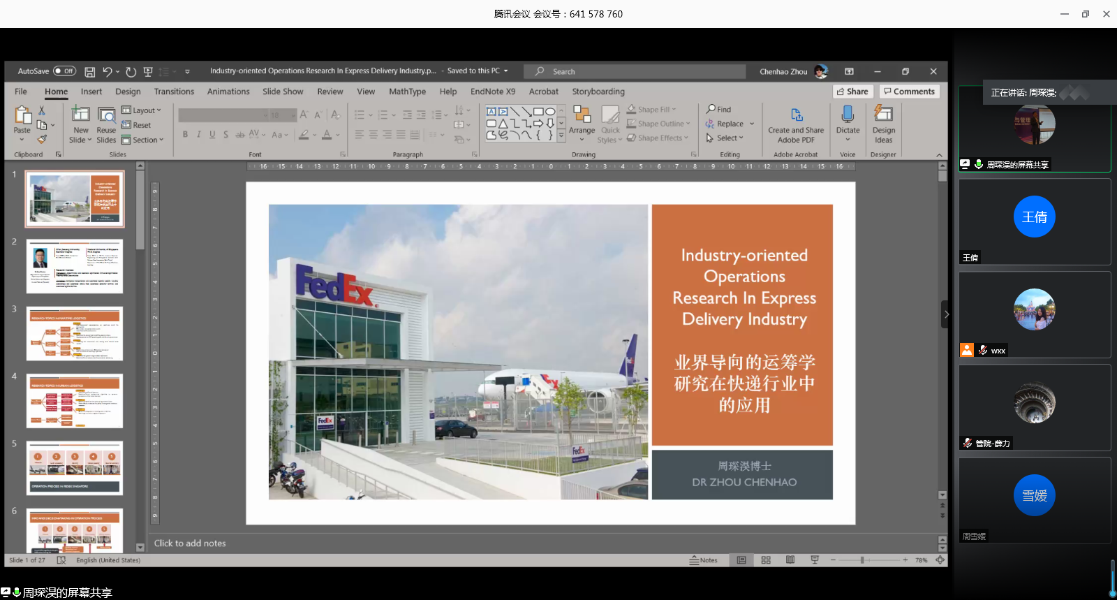 时值疫情特殊时期,管理学院于7月1日下午,通过线上学术交流、视频互动的方式,顺利召开了第七届翱翔青年学者管理学院分论坛。受邀参加此次论坛的有来自新加坡国立大学的周琛淏博士和来自法国里尔中央理工大学袁媛博士两位青年学者,学院院长车阿大、副院长贾明、人事秘书王霄及部分青年教师代表和160余位硕博学生参加了此次会议。