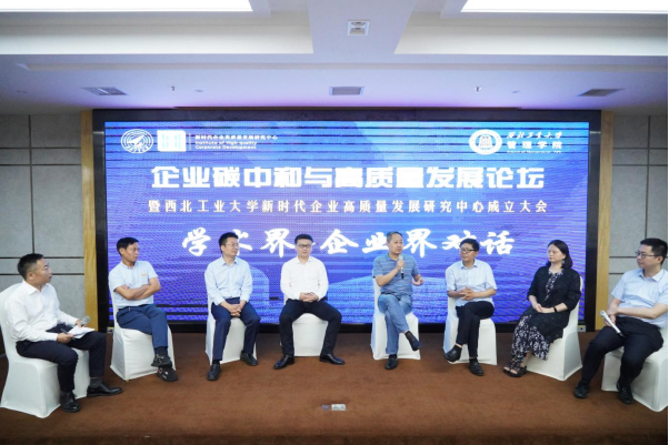 2021年7月10日,“企业碳中和与高质量发展论坛暨西北工业大学新时代企业高质量发展研究中心成立大会”在西北工业大学翱翔国际会议中心成功举办。本次论坛由西北工业大学主办,西北工业大学管理学院、西北工业大学学科建设办公室、西北工业大学新时代企业高质量发展研究中心承办,论坛主题为“企业碳中和与高质量发展”。来自南开大学、上海交通大学、南京大学等国内高校的顶尖学者,以及来自中国联合水泥集团有限公司、陕西龙门钢铁有限责任公司、国网新能源云技术有限公司、中国东方航空集团有限公司、大唐韩城第二发电有限责任公司、隆基绿能科技股份有限公司、南方周末中国企业社会责任研究中心等知名企业及媒体的高管齐聚一堂,共同探讨“30-60”目标下企业碳中和与高质量发展的理论创新和企业实践。