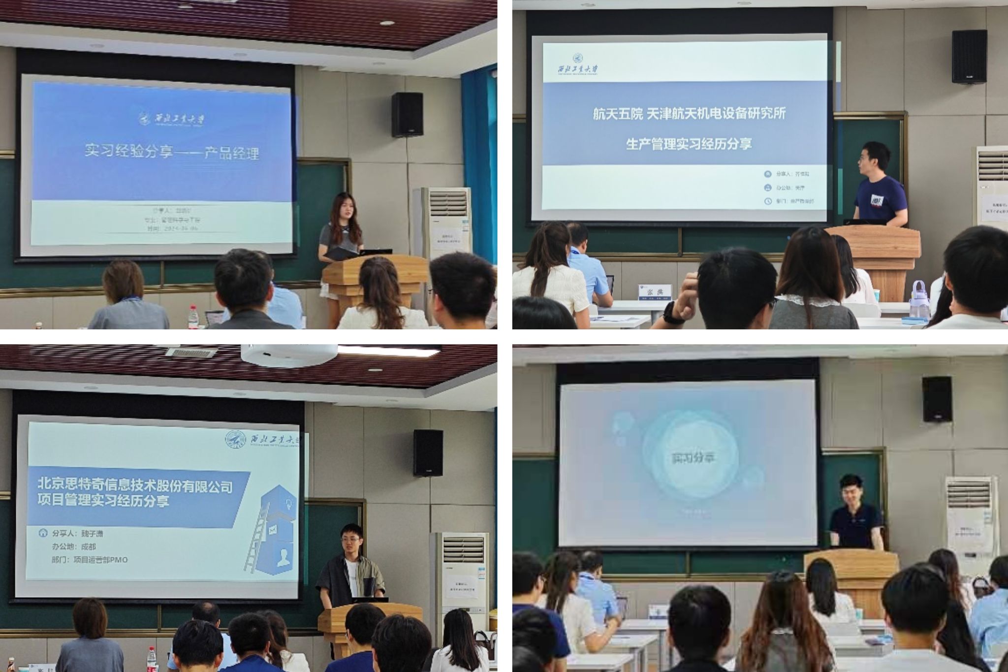 2022级管理科学专业的田靖妍、魏子潇、齐恒毅、铁凯扬4位同学结合自身经历,分别介绍了自己在百度AI产品经理、思特奇项目管理、航天五院生产管理岗位上的实习工作,并按照目标企业的选择、简历投递、面试技巧的顺序向大家详细介绍了实习申请流程。四位同学还结合工作岗位的具体特点分享了实习收获,为其他同学参加实习实践提供了参考。