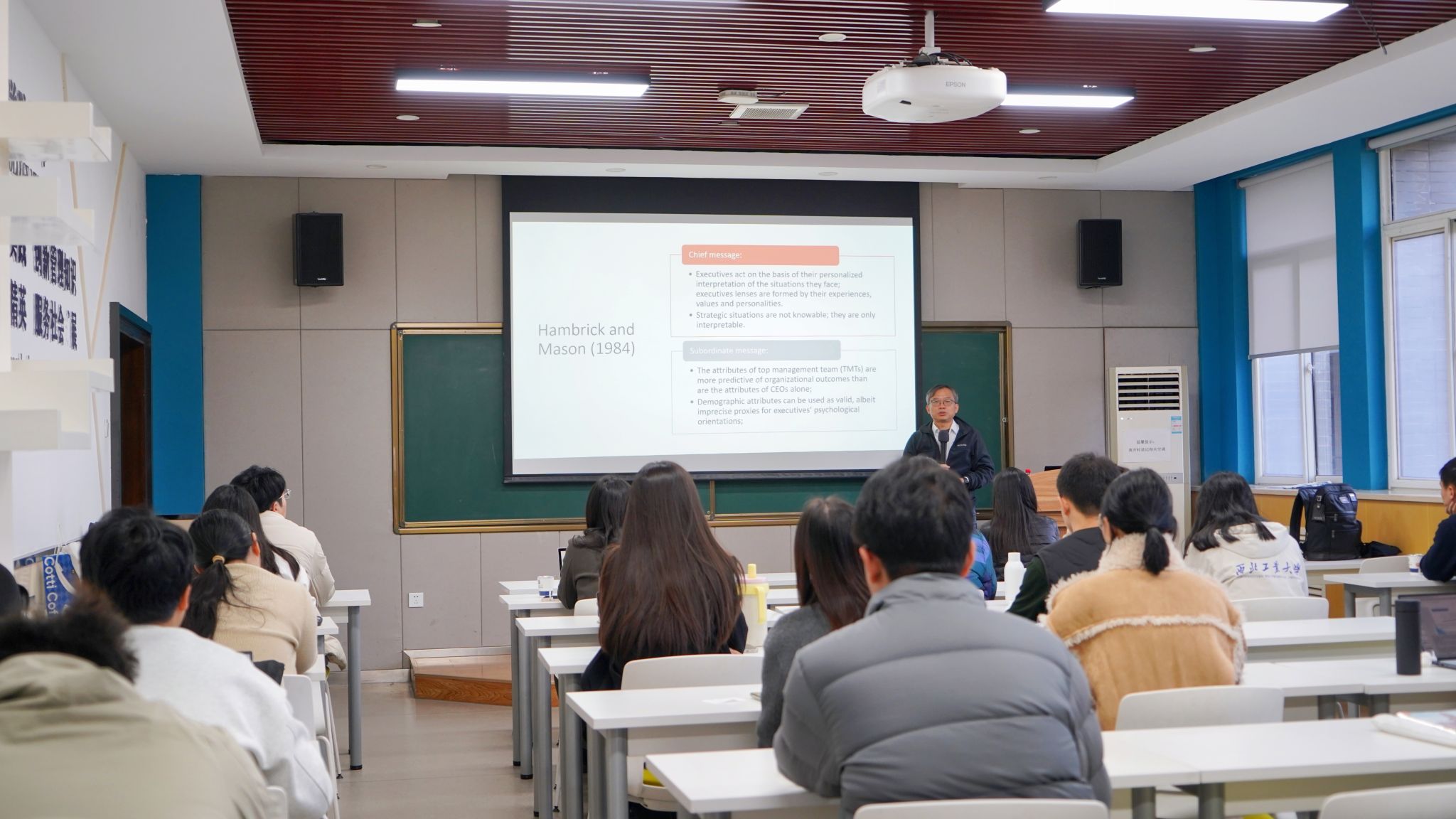 On the morning of November 18, at the invitation of the School of Management, Professor Keli Chen (Guoli Chen), Tenured Professor and Chair of the Strategy Department at INSEAD, delivered an academic lecture entitled Strategic Leadership Research: Past, Present and Future in Lecture Hall 214 of the School of Management on the Chang'an Campus. As the 25th lecture in the School of Management's 2025 Overseas Lecture Series, this event was hosted by Associate Professor Gong Guojia and attended by faculty members and postgraduate students of the Business Administration discipline at the school.