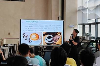 主讲老师袁亚亚以咖啡的溯源传说——“牧羊人的故事”引领学生走进咖啡的世界,到从咖啡传入我国的历程,咖啡种类、口味与独特的功效,再到咖啡的礼节,为同学们全面的讲解了咖啡的相关知识。
