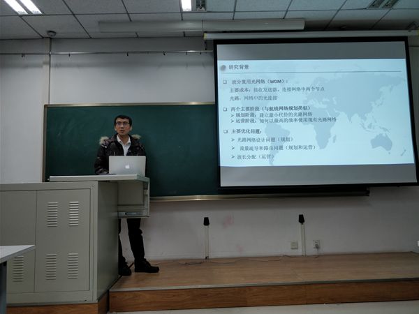 2018年01月07日上午,华中科技大学计算机学院计算科学理论所所长、智慧计算与优化实验室主任吕志鹏教授主讲的“光网络规划与路径优化:模型与算法” 学术报告会在长安校区管理学院210成功举办。管理学院副教授王阳老师主持了报告会。