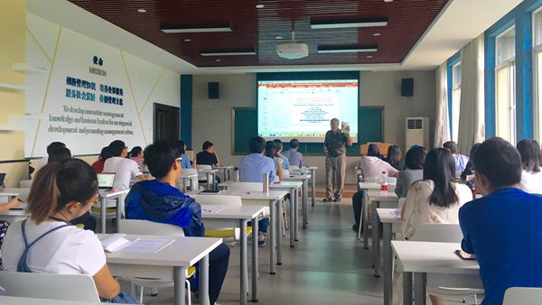 Huisingh教授通过翔实的数据、形象化的图表与视频等方式,向同学们展现了人类发展史上自身行为所导致的生态环境恶化,以及如今空气污染严重、海平面上升、沙漠扩大化、植被遭到破坏、物种面临灭绝、人口爆炸、贫富差距巨大等诸多残酷的生态环境和社会问题。