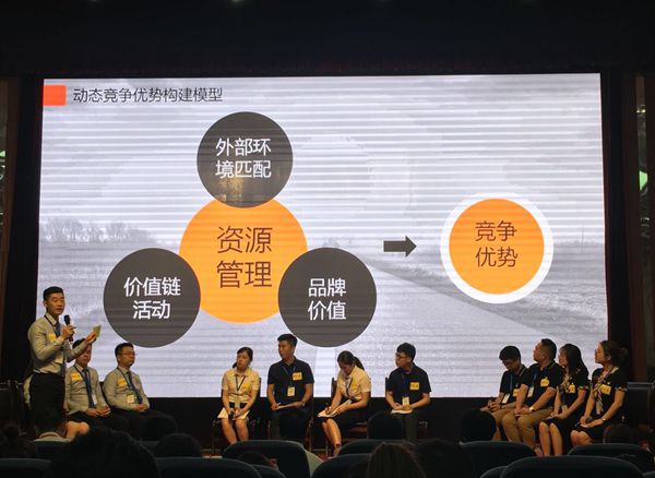 比赛由赛前盲审和现场竞赛两个阶段组成,赛前盲审于6日晚进行,7日进行现场竞赛,通过给定主题案例分析,并采用大小PK制竞争对抗。案例下发后仅60小时的赛前准备期,学员冒着酷暑连续奋战,认真阅读案例材料,深度挖掘企业的各种信息和数据,通过开展头脑风暴等形式,采用前沿的共演战略和动态竞争能力等理论工具,在朱煜明和金帆两位老师的精心指导下,相互密切配合,充分发挥各自的特长和优势,反复打磨和修改汇报材料。