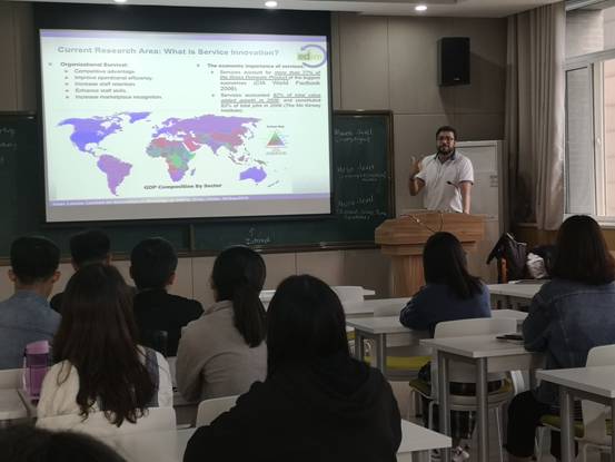 9月28日下午,西班牙马德里理工大学Lemus副教授应邀来管理学院进行学术交流,并做“Innovation of meanings”的主题报告。报告会在管理学院214报告厅举行,由邵婧副教授主持,来自管理学院的研究生参加了报告会。