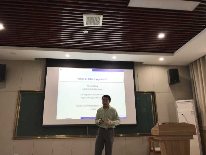 10月11日上午,新加坡管理大学运营管理系助理教授王宇博士应邀前来管理学院进行学术交流,并做了题为“When to Offer Upgrades?”的报告。报告会在管理学院214报告厅举行,由李乘龙副教授主持,参加此次学术报告会的有来自管理学院的本科生和研究生。