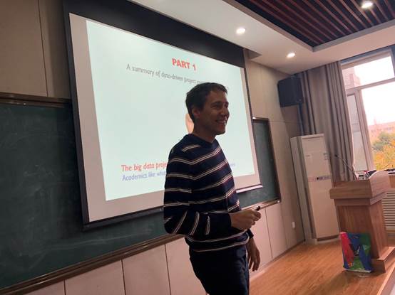 2018年10月30日,比利时根特大学(Ghent University)MarioVanhoucke教授应邀来管理学院进行学术交流,并做了题为“The big data project management”的学术报告。报告会在管理学院214报告厅举行,学院40余名研究生参加了报告会。张静文教授主持了报告会。
