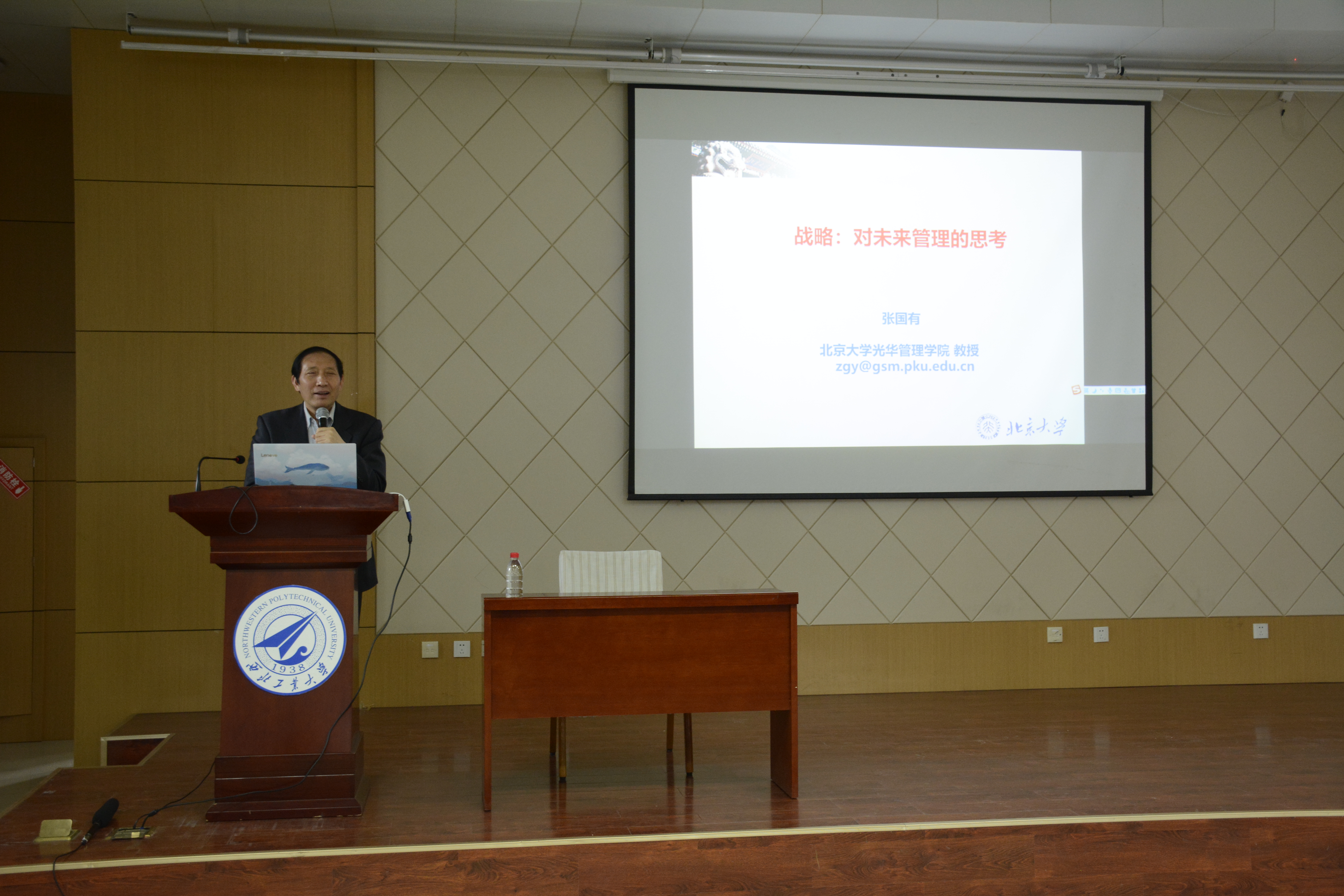 4月28日下午,北京大学光华管理学院教授张国有应邀在管理学院报告厅为我校师生作了题为“战略:对未来管理的思考”的报告。党委学生工作部副部长、学生处副处长査钢强,管理学院党委副书记曹子尧,管理学院副教授田庆锋以及全校近200名师生聆听了报告会。此场报告会由管理学院党委书记李小聪主持。