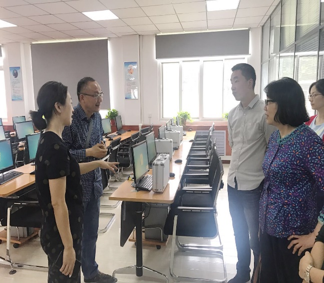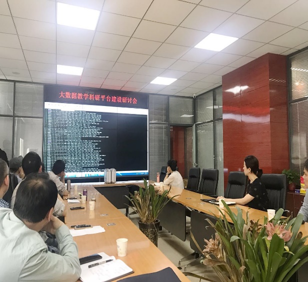 理学院院长岳忠玉首先从大数据技术实验中心建设背景、定位及目标、目前投入使用情况等几个方面进行了简单的介绍。然后,王莺详细介绍了大数据技术实验中心的实验实训平台、在线资源、服务器配置、集群分布等内容。接着,启光公司信息工程师为信管系教师演示了大数据技术实验室学生教学平台与教师科研平台的应用。座谈会后,信管系教师参观了大数据技术实验室、数学建模实验室、数据科学研讨室以及服务器机房,了解实验室的环境建设、硬件设备和软件系统等情况。最后,信管系教师和对方就围绕大数据云计算技术应用、大数据实验课程设计、实验“金课”建设方法与途径等方面进行了热烈的交流与深入的探讨。