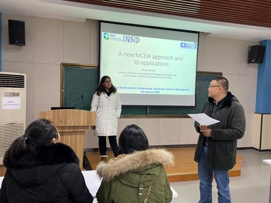 2020年1月6日上午9:30,应管理学院邀请,Federal University of Pernambuco的Mendonça Silva Maisa副教授在长安校区管理学院214教室作了题为“A New MCDA Approach and Its Applications”的学术报告。本次报告会由朱煜明教授主持,管理学院部分师生参加了此次报告会。