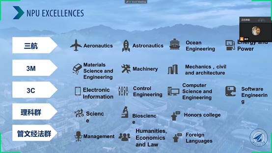 最后,来自西北工业大学国际教育学院留学生招生办公室的李梦晨老师为学生讲解留学生来访的手续及情况。李老师从西安的特色文化及西北工业大学的特点出发,介绍了西北工业大学目前的学术地位和学科排名等信息,也介绍了参与IMIM项目的学生,来访西工大所需要进行的专业及课程。此外,李老师也介绍了交换学生来访可以申请的奖学金及申请程序,并鼓励学生来访西北工业大学。