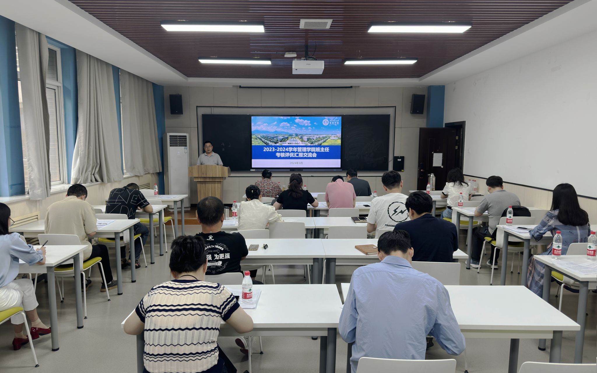 为进一步提升班主任的专业素养和业务能力,推动班主任队伍的建设与发展,根据学校《关于开展2023-2024学年班主任考核工作的通知》精神,6月13日下午,管理学院举行2023-2024学年班主任考核评优汇报交流会,学院党委书记张爽、副书记王海啸、院长助理白洁、各院系教师代表、全体辅导员以及全体本科生班主任参加会议。