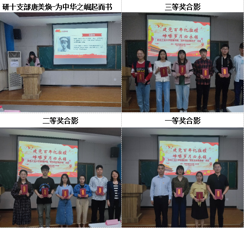 在比赛过程中,13位演讲者依次上台展示,紧紧围绕中国共产党历史,声情并茂地讲述建党故事、红色革命精神、英雄人物事迹等,再现了中国共产党发展的历史画卷。12031901班团支部成员深刻为大家讲解了五四运动的全过程;本二支部陈麒同志为大家分享了入党誓词的产生;研一支部王林琳同志从个人角度系统介绍了党史脉络;研二支部安琪同志为大家深情歌颂了延安精神;研三支部吴艳芳同志以信仰的光芒为主题进行了共产党宣言的讲解;研四支部邬佳、周子璇分别分享了共产党人永不磨灭的红色记忆——井冈山上的故事,秋收起义——中国革命新道路的伟大开端;研五支部刘鹏同志为大家生动地诠释了红船精神;研六支部贺娉同志饱满深情地讲述了国歌背后的故事;研七支部董永杰同志怀着无比激动自豪的心情讲述了香港回归的故事;研八支部王志义同志以激昂的心情歌颂了淮海战役的伟大胜利;研九支部侯金月同志为大家分享了伟大的历史转折点——遵义会议;研十支部唐美奂同志以为中华之崛起而读书为主题讲述了周恩来同志的故事。