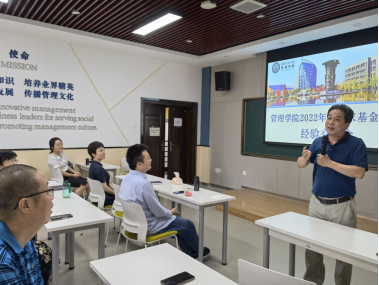 为促进学院广大教师,特别是青年教师,在申报国家基金项目方面水平的提升,同时也是为即将到来的2022年度国家基金申报工作进行预热准备,9月14日中午,在长安校区管理学院214报告厅召开了国家基金申报经验交流会,这也是学院“青禾沙龙”第三期主题活动。此次活动邀请到了蔡建峰教授、郭鹏教授和张莹副教授三位老师来分享今年项目申报的经验和感受,学院党委书记乔彩燕及近40名教师参加了交流会。活动以午餐会的形式进行,由贾明副院长主持。