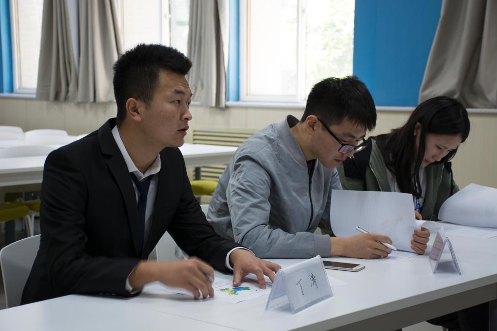 为了能让参与的同学真切地感受到求职过程中的竞争氛围,同时能够最大程度地发现自身的不足从而做出提升,本次活动邀请了14名管理学院的MBA与EDP学生作为专家评委对参加活动的同学进行面试。面试以无领导小组讨论的形式进行,共进行了四场。面试题目是通过一段材料考察管理学中的目标管理在实际案例中的分析应用,考验同学们的组织领导能力、团队协作能力的同时,对专业素养、临场应变、材料解读分析等能力也有较高层次的要求。