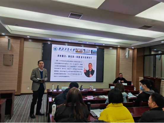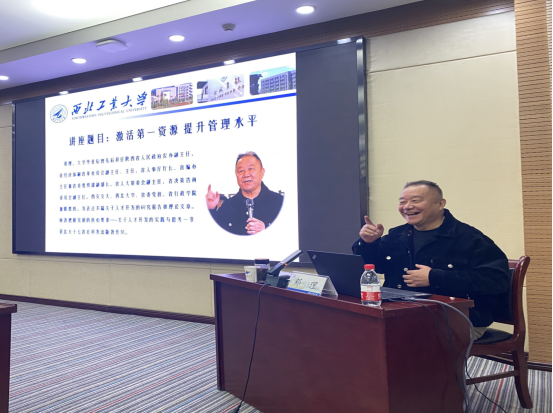 11月21日上午,管理学院特邀陕西省十届人大常委会副主任邓理为专业学位研究生作了《激活第一资源,提升管理水平》的专题讲座,讲座由管理学院院长车阿大主持。