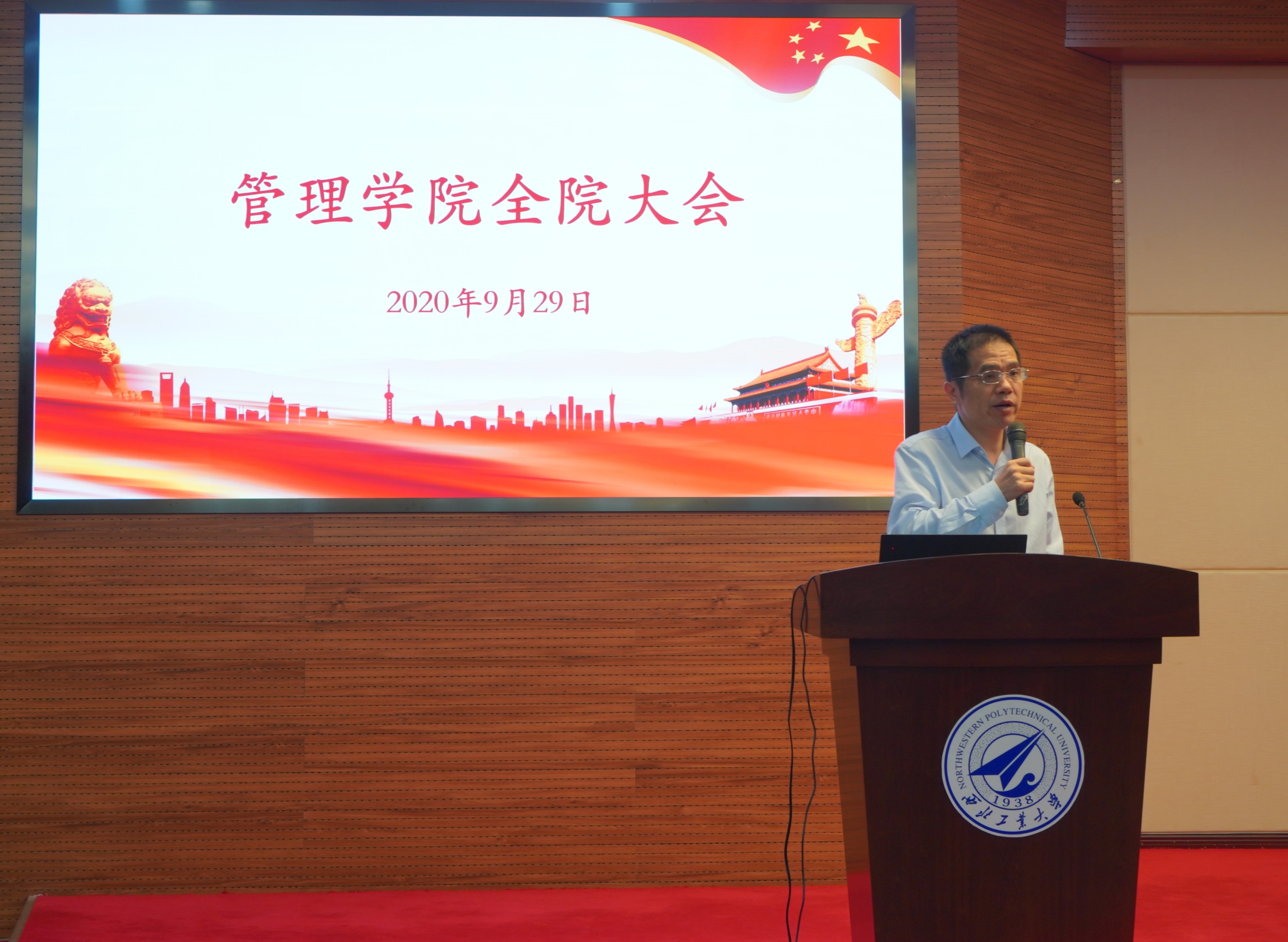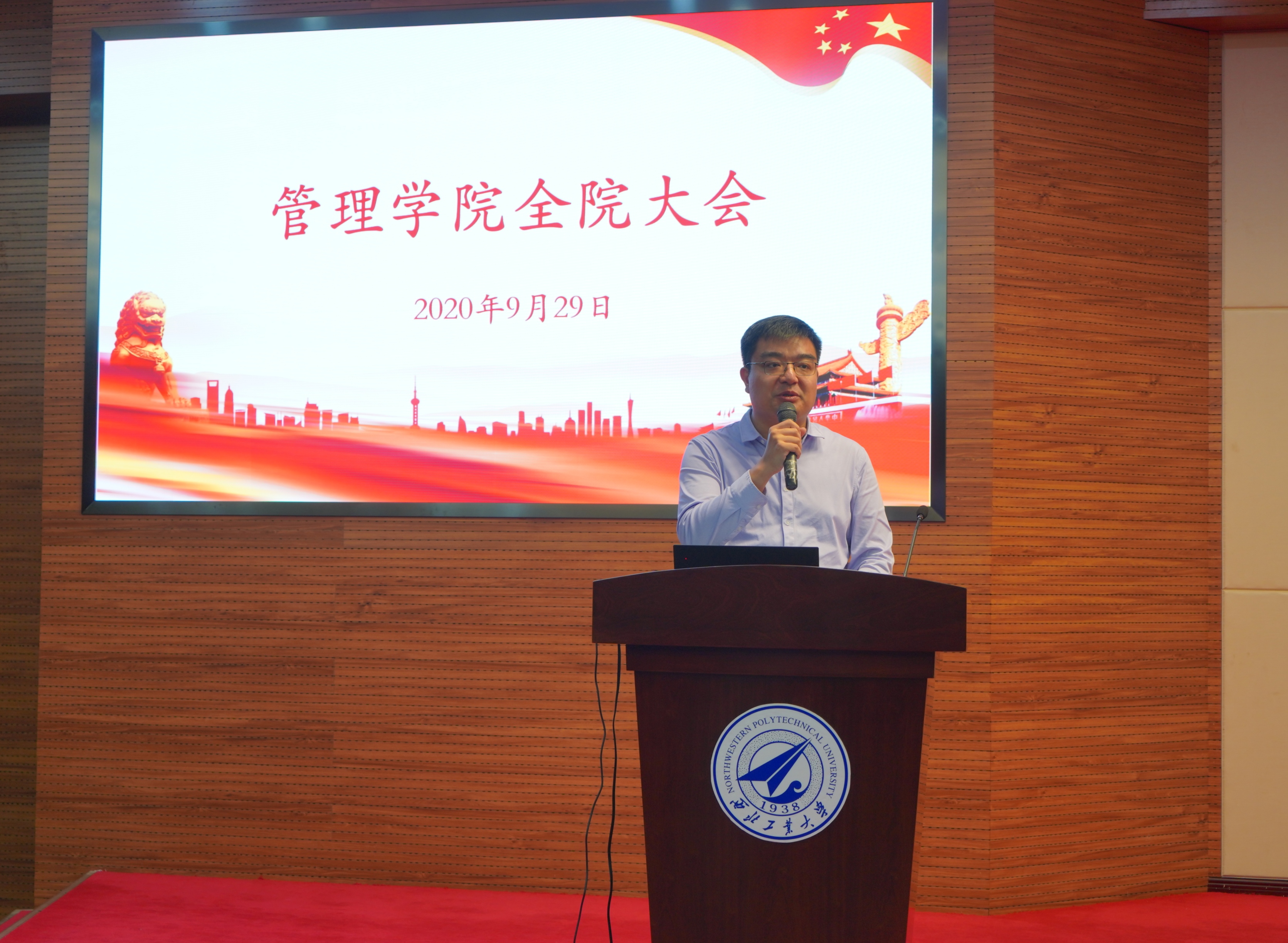 9月28日,管理学院在国际会议中心第五会议室召开全院大会。会议特别邀请了科学技术研究院副院长李蕴做国家自然科学基金、国家社科基金项目申报的宣讲;研究生院副院长宁昕做研究生教育培养政策的宣讲;力学与土木建筑学院教授张娟做“课程思政”建设经验分享。会上,学院领导就近期工作进行了通报,并部署了下半年工作重点。管理学院全体教职工参加会议,会议由院长车阿大主持。