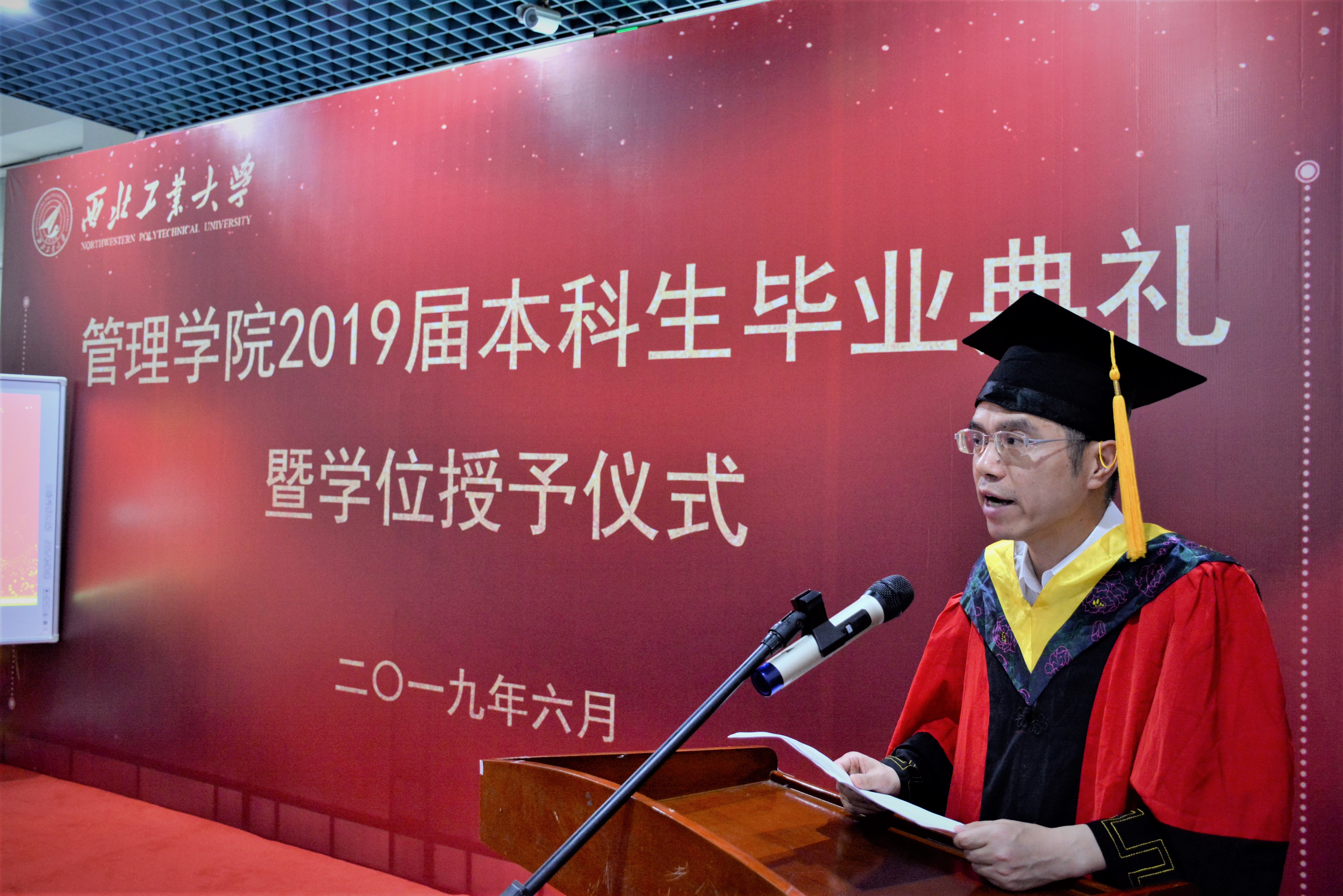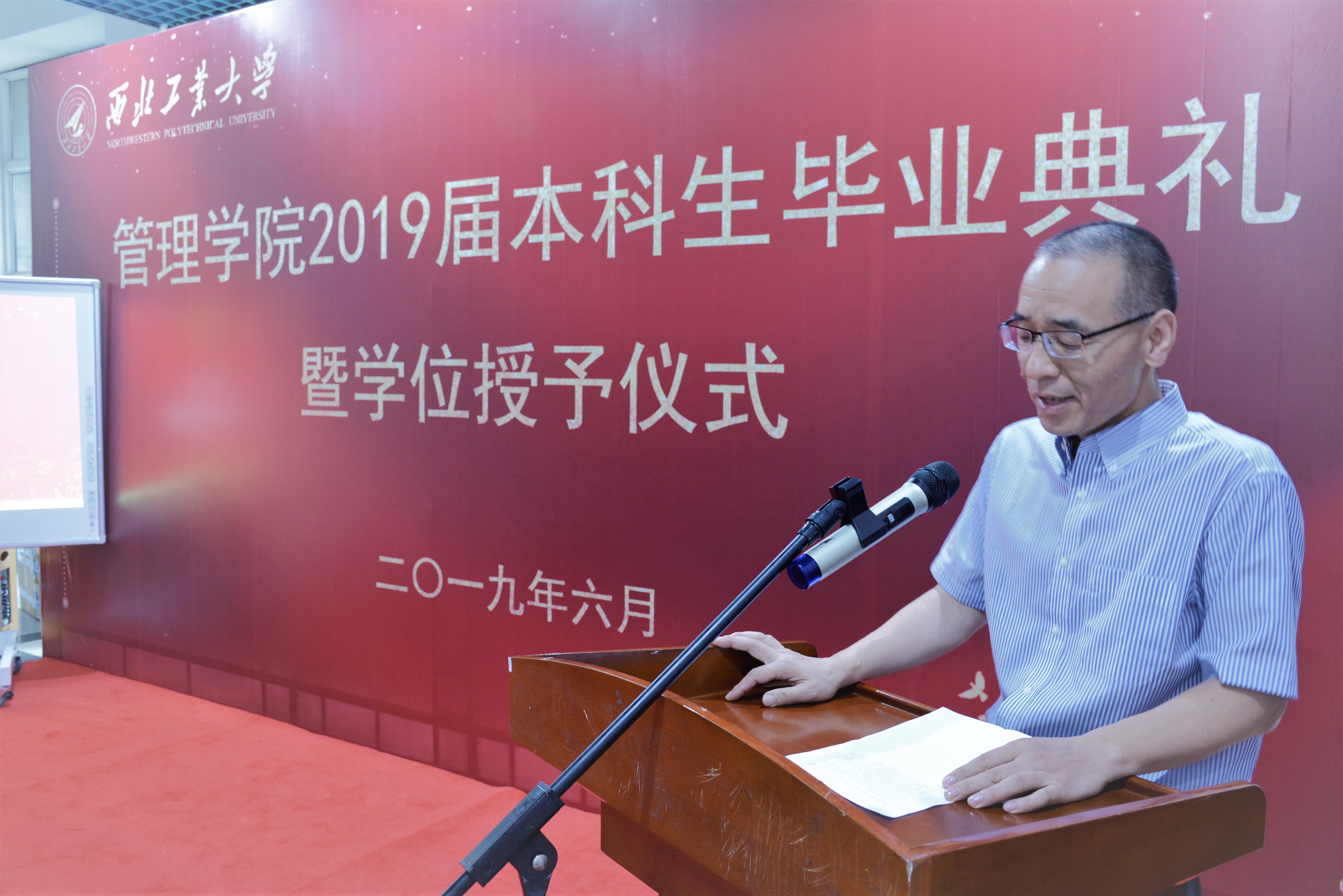 仲夏时节,终南葱郁,蝉鸣紫藤。6月26日下午,管理学院在学院一楼大厅隆重举行2019届本科生毕业典礼暨学位授予仪式。