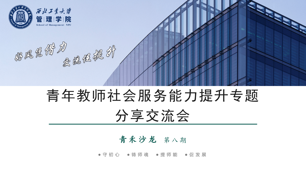 管理学院“青禾沙龙”是在学院党委的关心支持下,由学院青年教师骨干自发组织建立的学院青年教师学习交流平台。“青禾沙龙”将通过开展师德师风教育、校情校史介绍、科研学术交流、教学经验分享、素质素养提升等一系列形式多样、内容丰富的主题活动,落实“守初心,铸师魂,提师能,促发展”这一核心主旨,以促进青年教师加强对师德师风的深入认识,引导青年教师坚定理想信念、厚植爱国爱校情怀、涵养高尚师德,促进教学、科研能力持续提升,也是使我院青年教师职业发展更加科学化的一种新形式。沙龙活动命名“青禾”,意指青年教师的年轻、朝气和希望,而青年教师在未来也必将走向成熟,勇担使命,累结硕果。