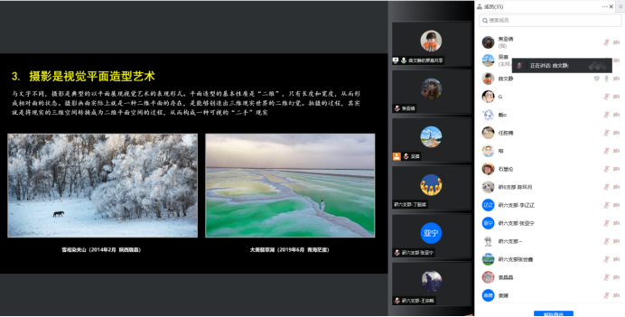 接下来,苟老师从《九天揽月会有时》、《天和载梦问鼎苍穹》、《太空速递—天舟二号》等作品入手,简述了自己的摄影实践经历,向与会师生们讲述了每一张照片背后蕴含的时代故事、拍摄经历和社会印记。一幅幅精彩的摄影作品、一句句深入浅出的讲解,把与会师生都吸引住了。苟老师还说到,摄影不仅要将照片拍得生动有趣,更要做到用摄影传达情感和传播信息,摄影的魅力正在于她无限的可能性。