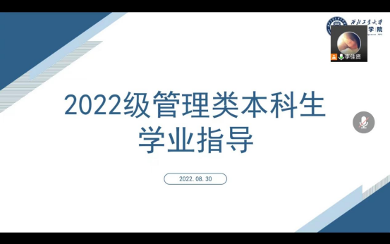 为帮助2022级新生科学合理规划自己的大学生涯、了解管理类培养方案、指导同学们正确选课,2022年8月30日,管理学院本科教学办公室联合学生工作办公室举行了2022级管理类本科生学业指导宣讲会,会议线上进行。管理学院副院长陈琳、学院副书记王兆旭、校教务处魏颖、学院教学秘书张雪谧、李佳贤、学院辅导员那依力·库尔班以及2022级新生参加了此次宣讲会,会议由那依力·库尔班主持。