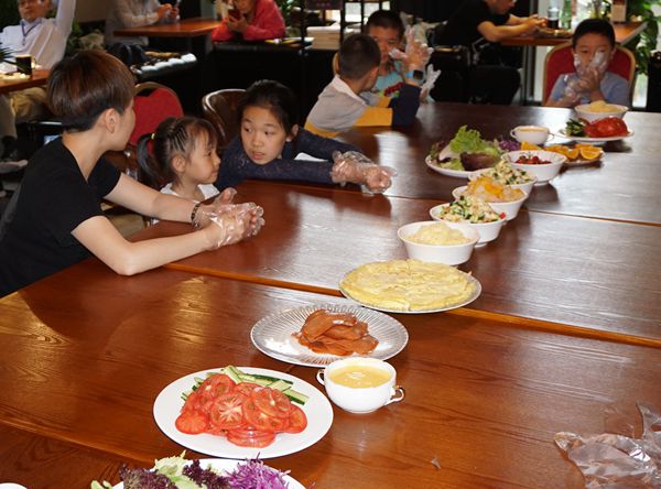 活动安排小朋友们手工DIY披萨和三明治制作。按照厨师叔叔的示范和讲解,孩子们亲自动手,调配运用各种材料制作完成了精美的作品,制作出了个人专属的披萨和三明治,完成烤制并与家长和小朋友们一起分享。