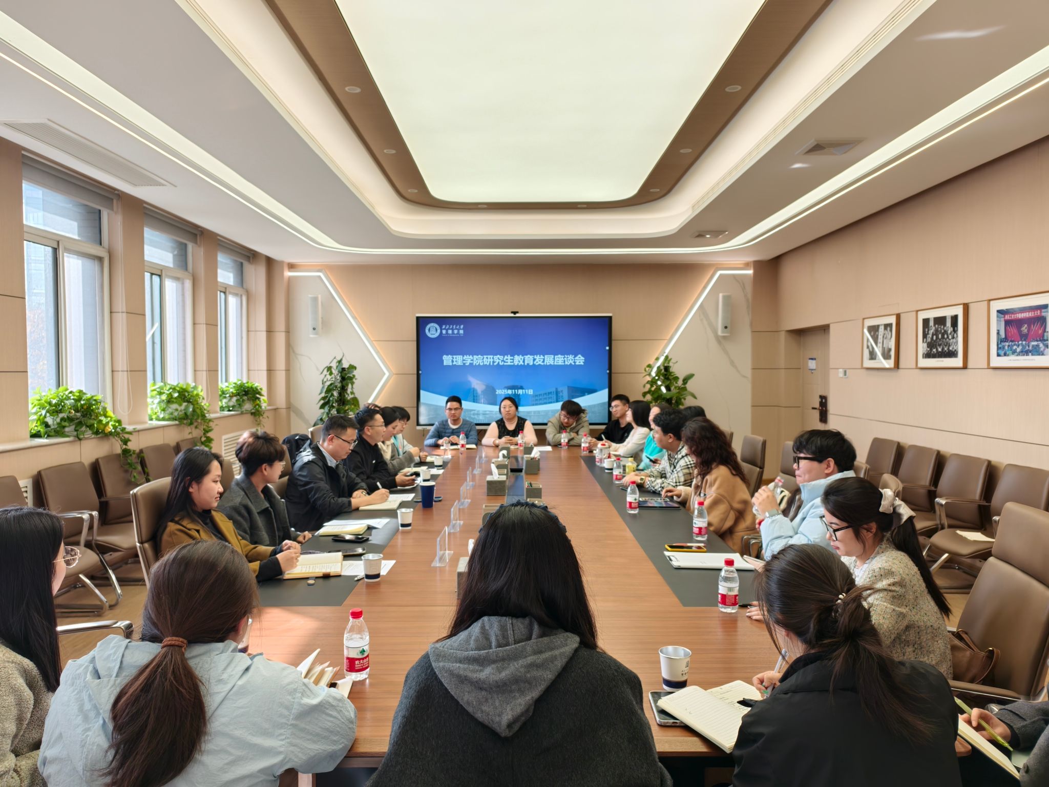 To advance the high-quality development of postgraduate education, solicit students' opinions and suggestions extensively, and continuously improve the quality of cultivation as well as the level of management and services, the School of Management held a forum themed "Listening to Students' Voices for Joint Development – Offering Suggestions for the High-quality Development of Postgraduate Education" in Conference Room 212 on the Chang'an Campus on November 11. Relevant school leaders in charge of postgraduate education and student affairs, teacher representatives from the Academic Administration Office and Student Affairs Office, as well as master’s and doctoral student representatives attended the forum jointly. The forum was hosted by Teacher Hong Zhaofu.