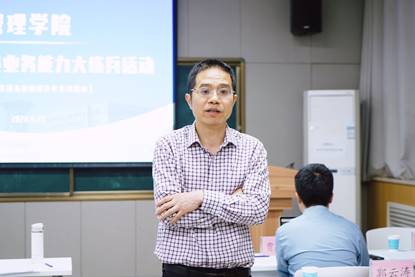 2022年,是管理学院机关服务提升年。为进一步提升学院机关工作人员管理服务工作效能,4月27日下午,学院举办机关工作人员业务能力大练兵活动。管理学院院长车阿大、党委书记乔彩燕等学院领导班子成员,各系主任、党支部书记及教师代表应邀参加本次活动。