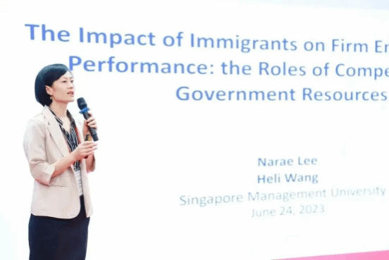 来自新加坡管理大学李光前商学院的Prof. Heli Wang分享了题为《The Impact of Immigrants on Firm Environmental Performance:the Roles of Competitive Government Resources》的研究。来自欧洲工商管理学院的Prof. Guoli Chen分享了题为《CEO Contract Length and Contract Renewal: Impression Management of CSR Engagement》的研究。