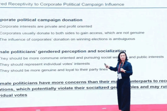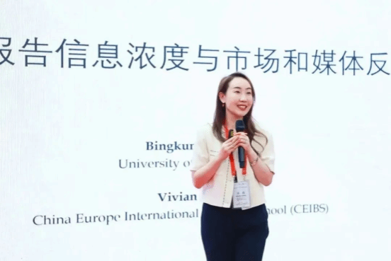 下半场会议由张莹副教授主持,来自香港科技大学的Prof. Yaping Gong分享了题为《Angel and Evil? Double-edged effect of incremental belief》的研究。来自中欧国际工商学院的Prof. Wei Guo分享了题为《CSR报告信息浓度与市场和媒体反应》的研究。来自香港科技大学商学院的Prof. Danqing Wang分享了题为《Female Politicians and Gendered Corporate Political Donation in Taiwan》的研究。