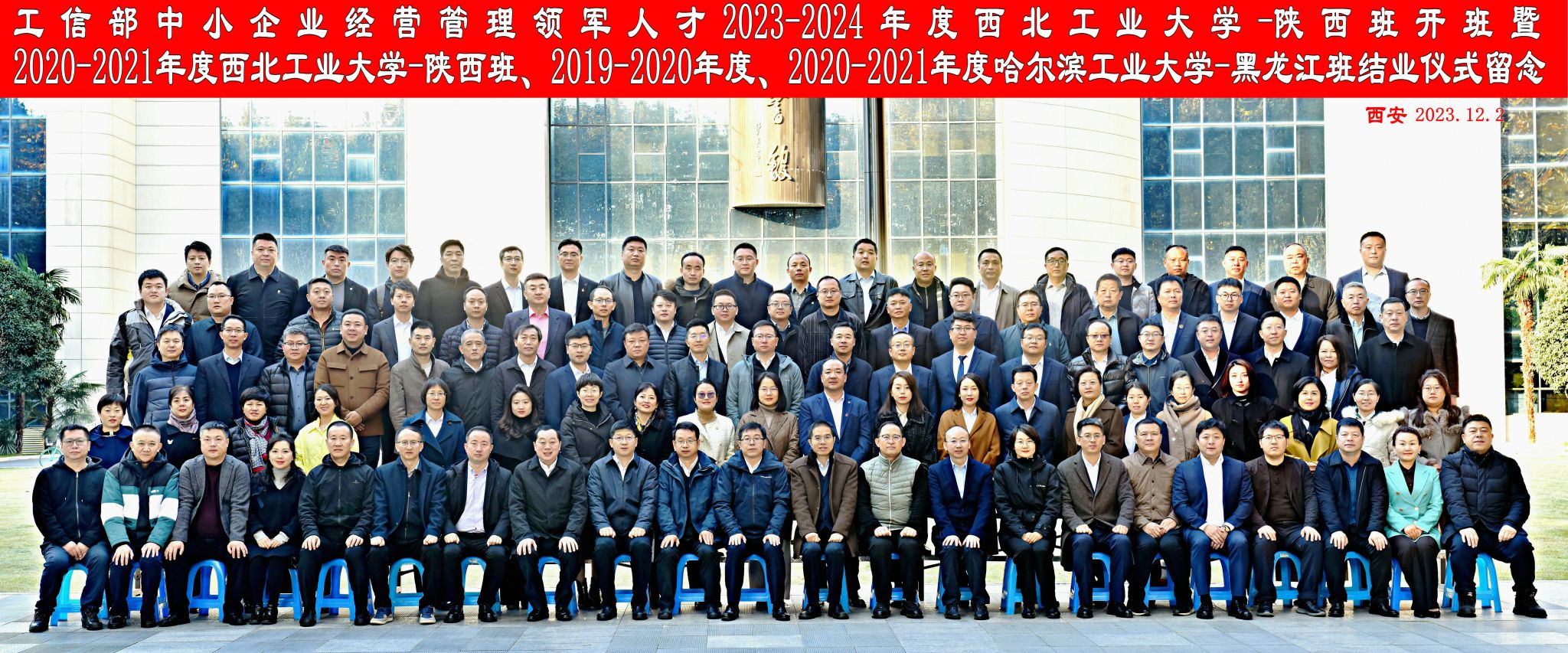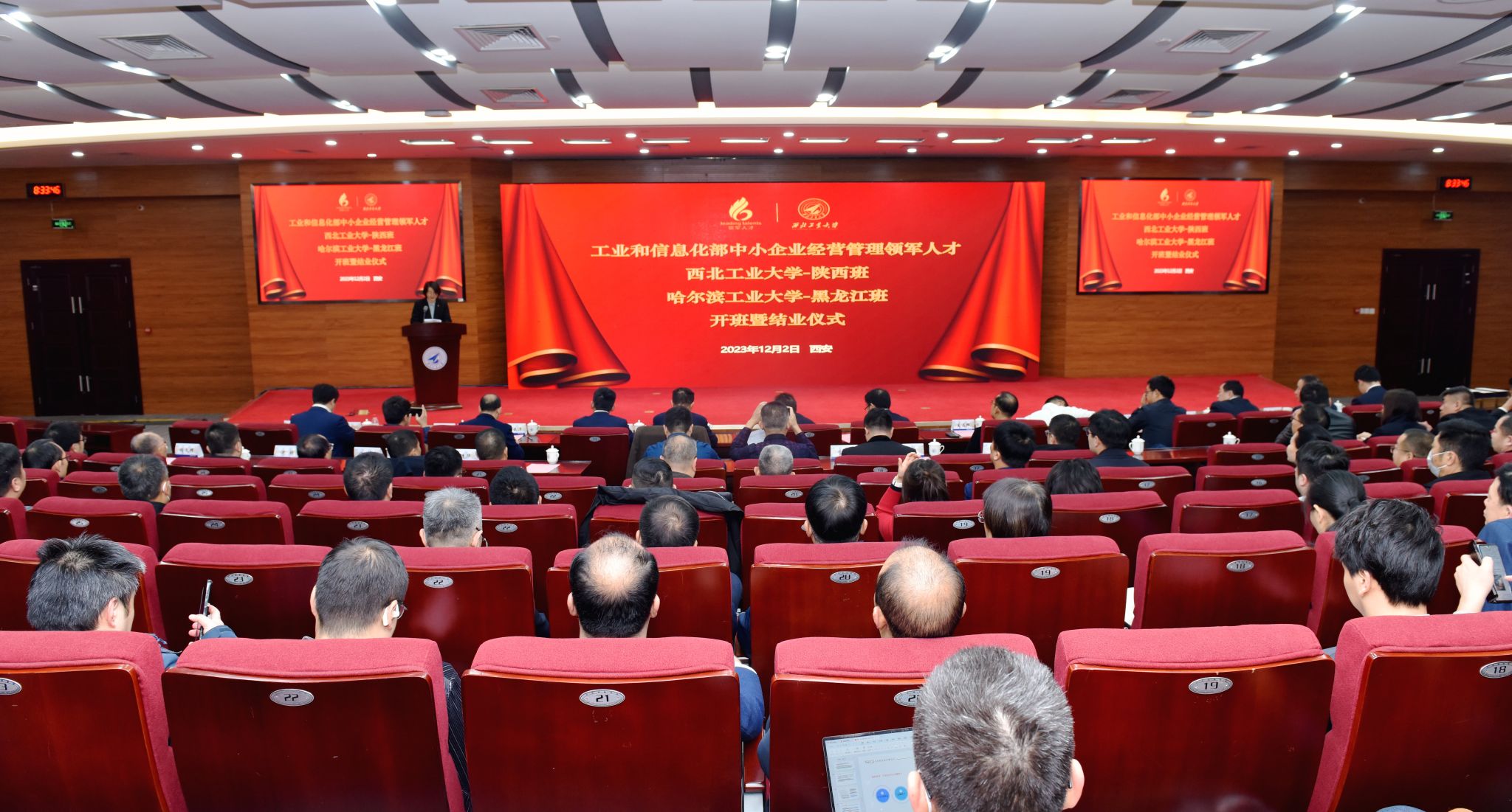 12月2日,工业和信息化部中小企业经营管理领军人才2023-2024年度西北工业大学-陕西班(第12期)开班暨2020-2021年度西北工业大学-陕西班(第9期)、2019-2020年度、2020-2021年度哈尔滨工业大学-黑龙江班结业仪式在西工大友谊校区顺利举行。工业和信息化部企业经营管理人才素质提升工程协调小组办公室副主任、人才交流中心副主任曾卫明,人才交流中心服务处处长白晓,西北工业大学党委常委、副校长侯成义,校友会秘书长杨铭,管理学院院长车阿大、副院长郭云涛,哈尔滨工业大学经济与管理学院领军人才办公室主任王晶辉,领军班班长、领军校友会、联谊组织代表以及西工大、哈工大开班/结业学员等120余人参加了开班/结业仪式。仪式由工业和信息化部企业经营管理人才素质提升工程协调小组办公室秘书处副秘书长张真主持。