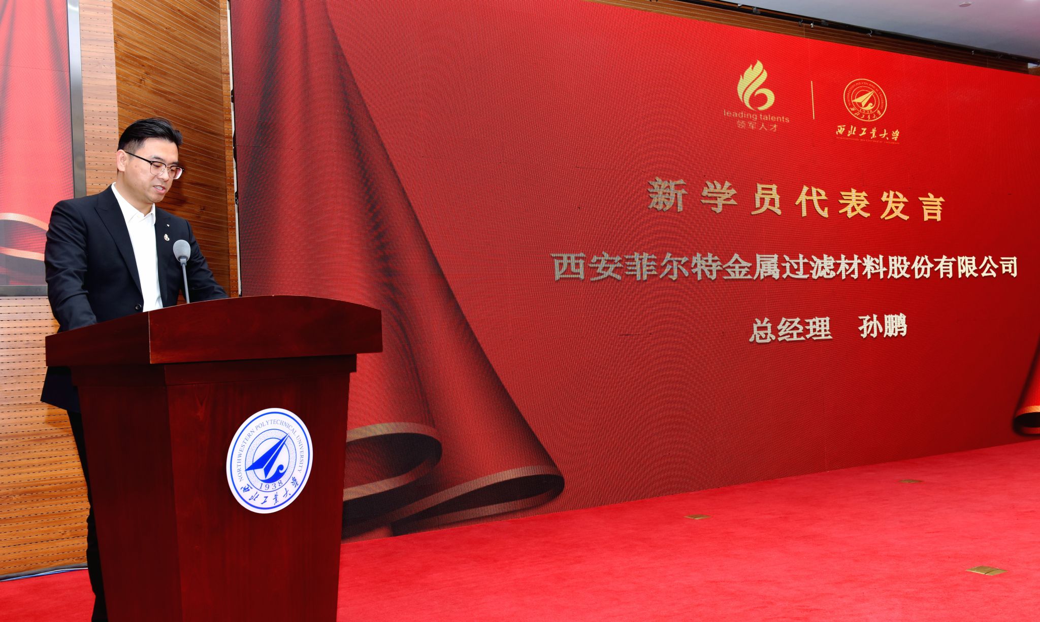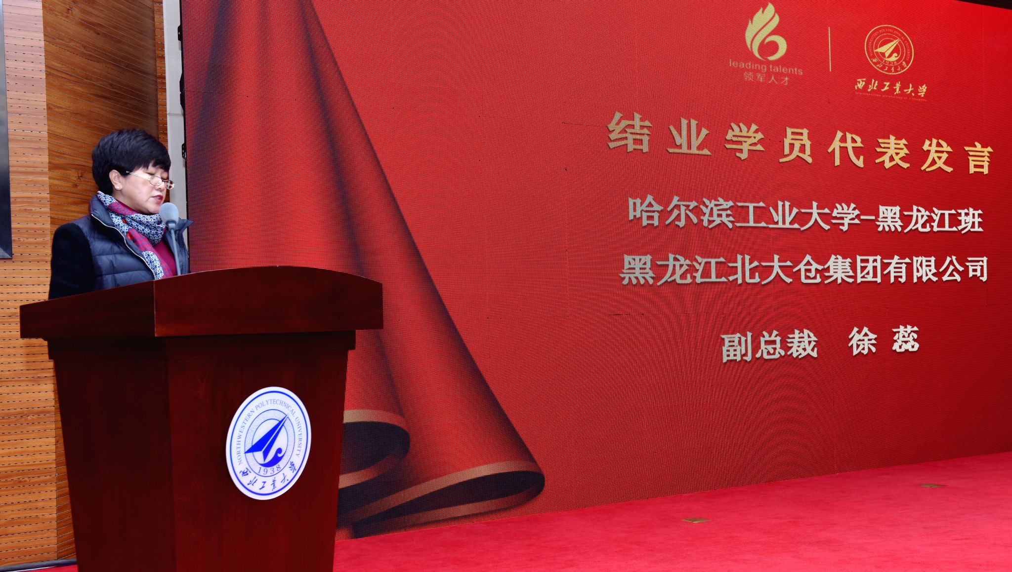 西北工业大学副校长侯成义致辞,他代表学校对新学员表示热烈欢迎,对顺利结业的学员表示诚挚祝贺。他讲到:“今年11月工信部金壮龙部长来校调研时也指出,服务支撑加快推进新型工业化、建设制造强国和网络强国,是部属高校的重要使命”。哈工大和我校作为“工信七子”,流淌着同样的军工血脉,承担领军人才培训工作,是工信部对两所高校的信任,也是我们发挥“服务社会”职能的重要举措。西工大作为“工信部中小企业经营管理领军人才培训”第一批获授权机构,自2013年以来已连续开办了12期领军人才培训,累计培训近700余人,为陕西经济转型升级和创新发展提供了强大的智力支持。最后表示,希望通过此次培训,建立起校企沟通的桥梁,推动科技创新、人才培养等领域校企实质性合作。