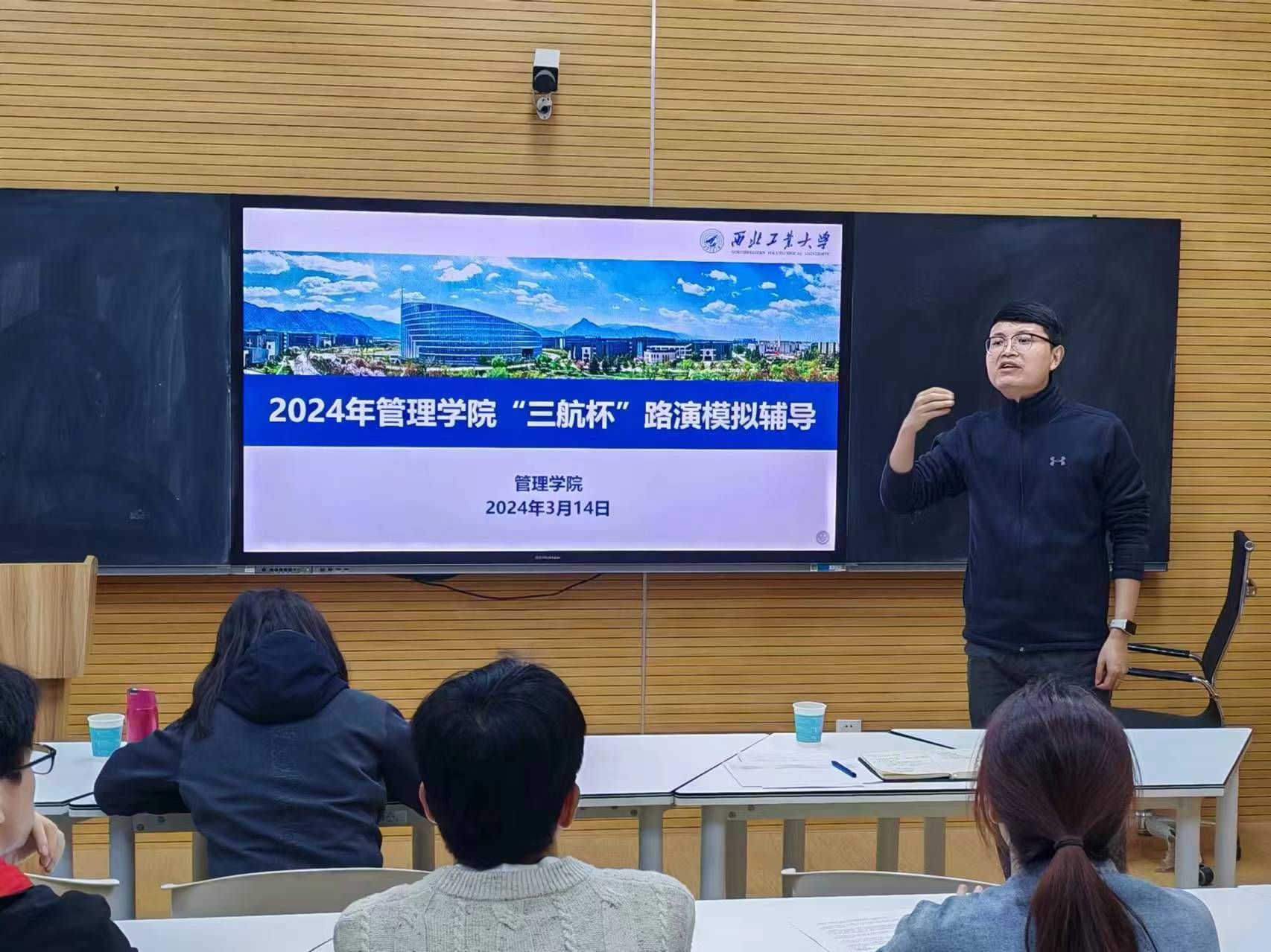为进一步培养学生创新创业思维和能力,巩固提升“三航杯”决赛参赛项目水平,推动“总师育人文化”引领学生全面发展,3月14日,管理学院举办2024年“三航杯”校赛路演模拟辅导,帮助参赛团队熟悉决赛流程、打磨参赛作品、提升路演水平。管理学院王莉芳教授、王颖晖副教授、李恒宇副教授、党委副书记王海啸、学工秘书巩雪参与本次辅导。