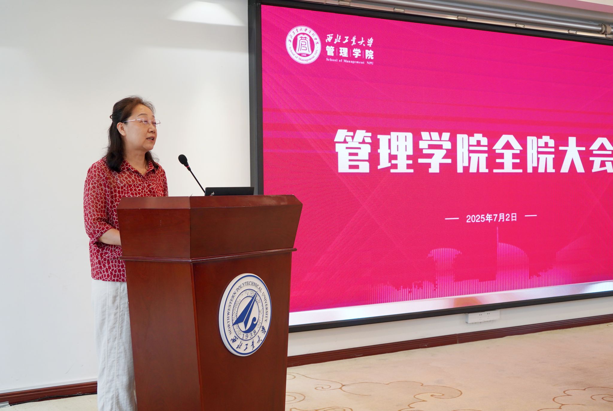 7月2日下午,管理学院2025年春季学期全院教职工大会在正禾宾馆西四楼多功能厅召开。学院全体教职工参加,会议由学院党委书记张爽主持。