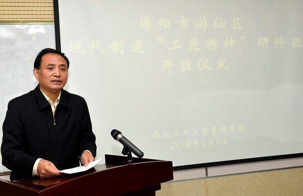 4月9日上午,EDP中心举行了现代制造“工匠精神”专题研修班开学仪式,游仙区食药工质监局党组书记/局长倪永贵、西北工业大学党委组织部副部长王克勤出席了开班仪式。开班仪式由EDP中心主任郭德主持。
