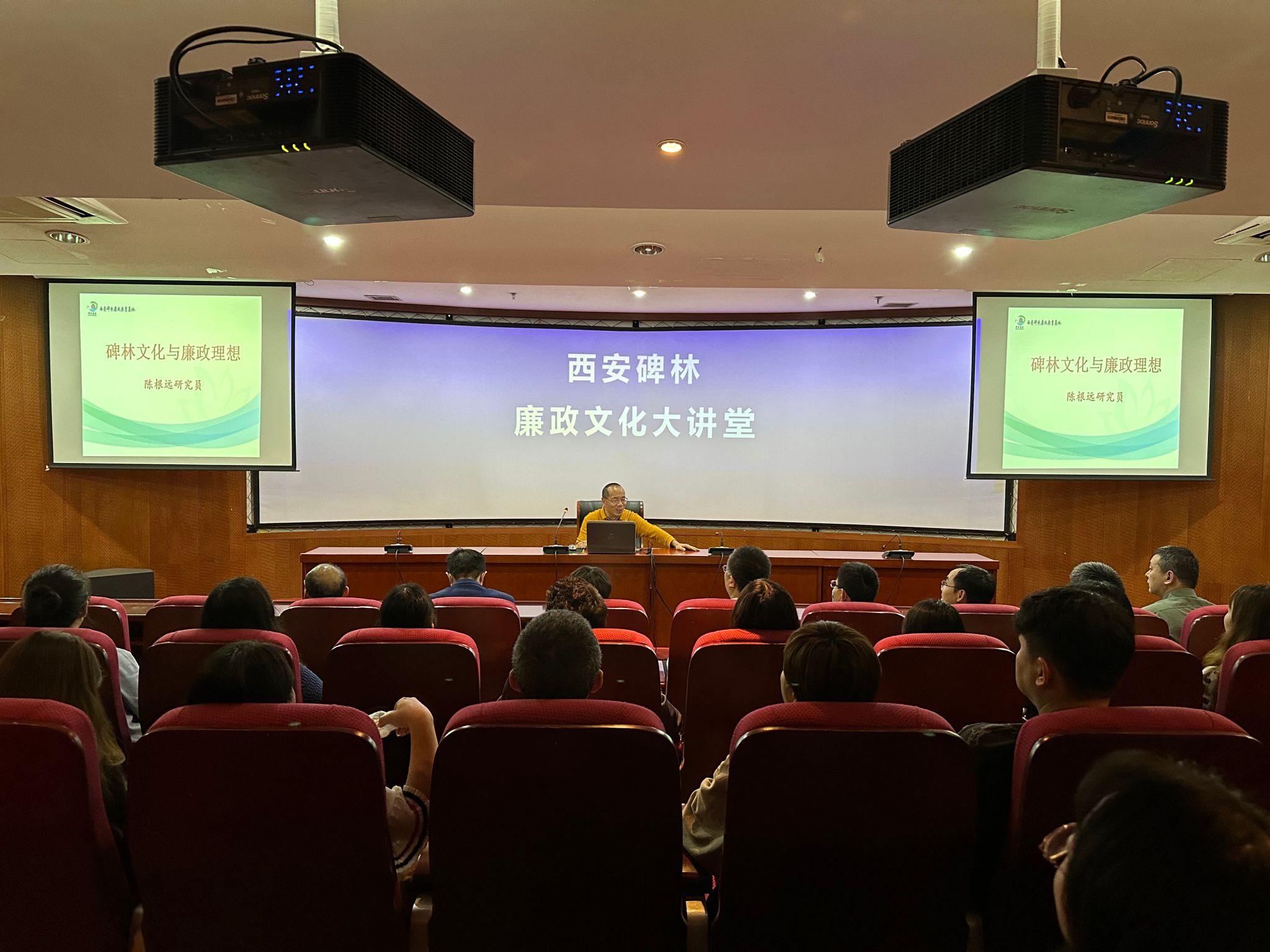 参观伊始,大家集体聆听了陈根远研究员讲授的党风廉政教育专题党课,通过一件件馆藏文物,为我们讲述碑刻文物背后立体鲜活的历史故事,共同学习忠、孝、仁、义、礼、智、信、廉等中华古代优秀廉政文化思想和古代名人的廉洁故事。