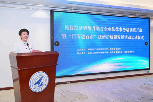 6月13日,2023年陕西省民营经济转型升级与企业法律事务培训班开班暨“百所进百企”法治护航促发展活动启动仪式在西北工业大学友谊校区顺利举行。陕西省工业和信息化厅一级巡视员沈长友,非公经济发展处处长张进、二级调研员张巨英,陕西省司法厅一级巡视员丁小军,律师工作处处长宗银川、副处长王文辉,陕西省律师协会副会长刘洁、副秘书长龙瑞东,西北工业大学党委副书记、纪委书记吕卫东,管理学院党委书记乔彩燕、副院长郭云涛,西部法制报社代表,民营企业主要负责人、部分市(区)工信部门相关工作负责人及律师事务所相关代表100多人参加了仪式。仪式由西北工业大学管理学院党委书记乔彩燕主持。