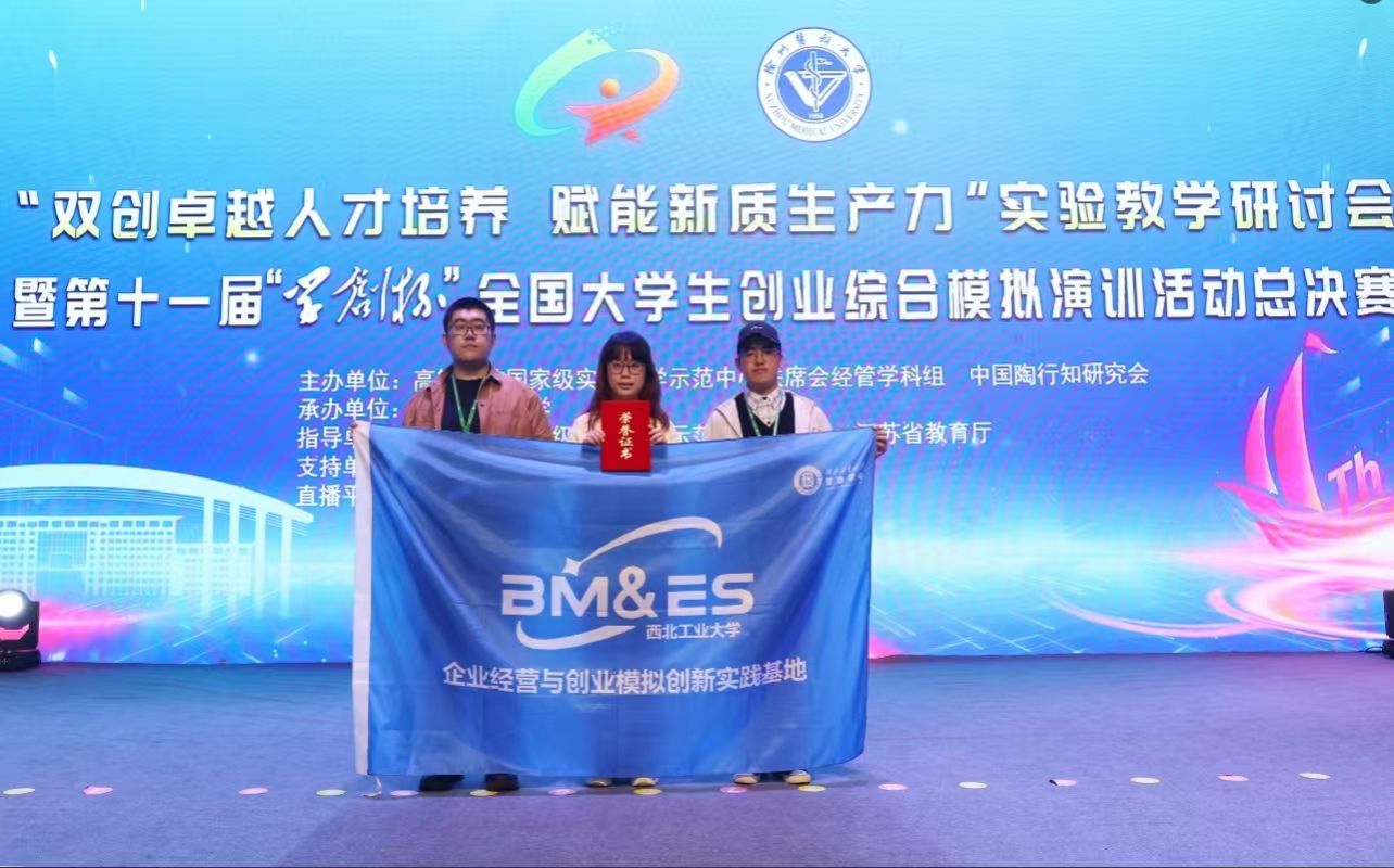 该赛事从2024年3月正式启动,校内选拔赛由西北工业大学企业经营与创业模拟创新实践基地承办,共有16支队伍报名参赛。经过校内选拔、陕西省赛及全国预选赛的层层选拔,历时8个月,在谢言副教授、田庆锋教授的指导下,在周珍副教授、邓巍副教授的支持下,西北工业大学管理学院本科生周洋、赵晟烨、张新榕组成的参赛团队,凭借优异表现成功晋级全国总决赛,最终荣获全国一等奖。