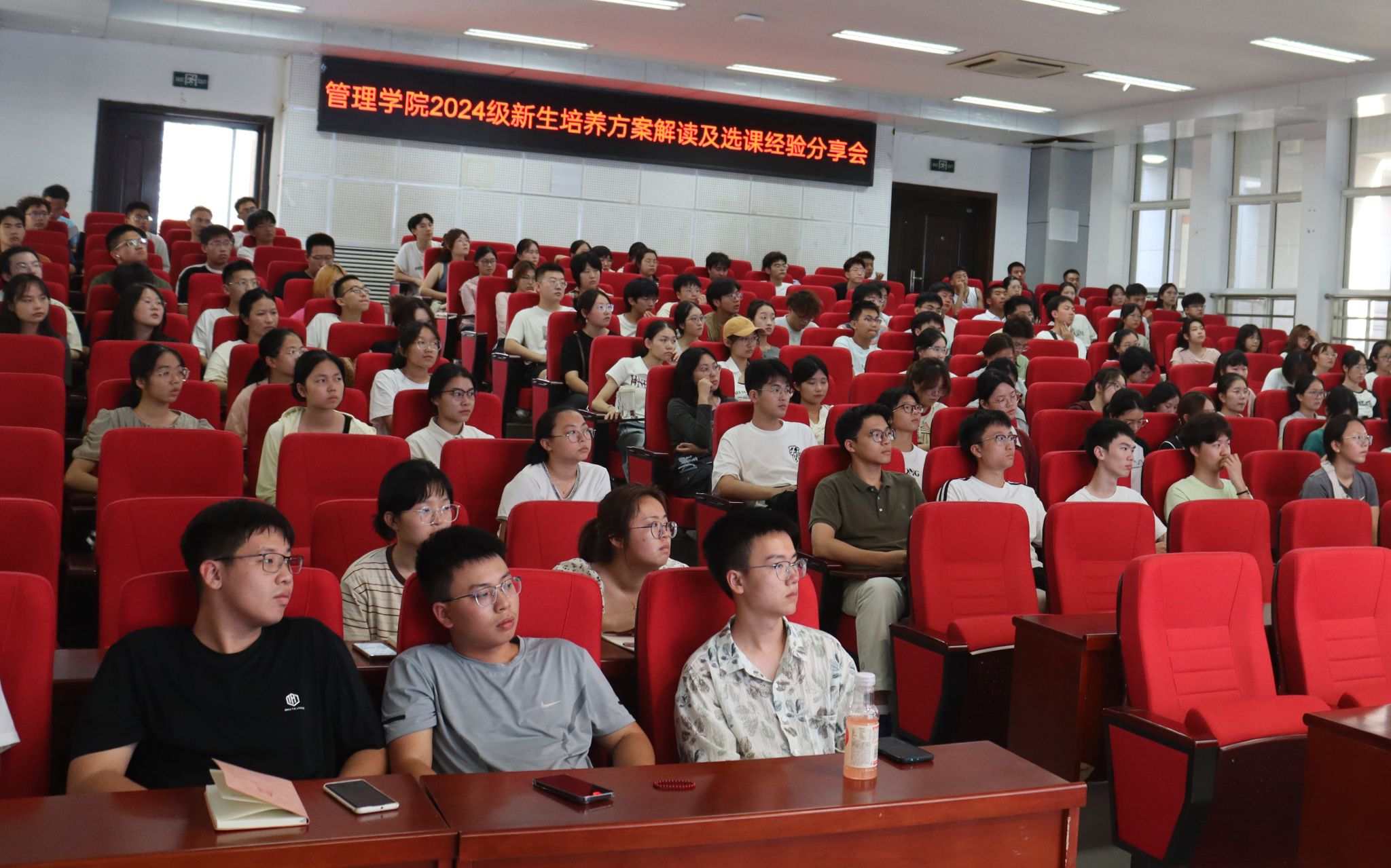 9月6日下午,学院召开了首次2024级新生大班会,辅导员张宇带领全体新生认真学习了《西北工业大学学生手册》,重点学习了学生违纪行为处理、公寓管理、请销假等管理规定。张宇还详细讲解了《管理学院本科生学风建设实施方案》,并围绕学风建设相关工作做了安排。学工秘书巩雪向同学们细致讲解了管理学院本科生综合素质测评的具体实施细则,全面介绍了学院的奖助政策体系、本科生参与创新创业工作的相关政策和机会。学工秘书张梦予全面介绍了学生党建工作的重要性和党员发展流程,详细讲解了大一新生如何努力争取早日加入党组织,让新生对党组织有了更清晰的认识和了解。此外,2024级各小班还在班主任的主持下召开了班会,组织开展了破冰活动,选举产生了各班班委,为班级后续各项工作的顺利开展打下了良好基础。