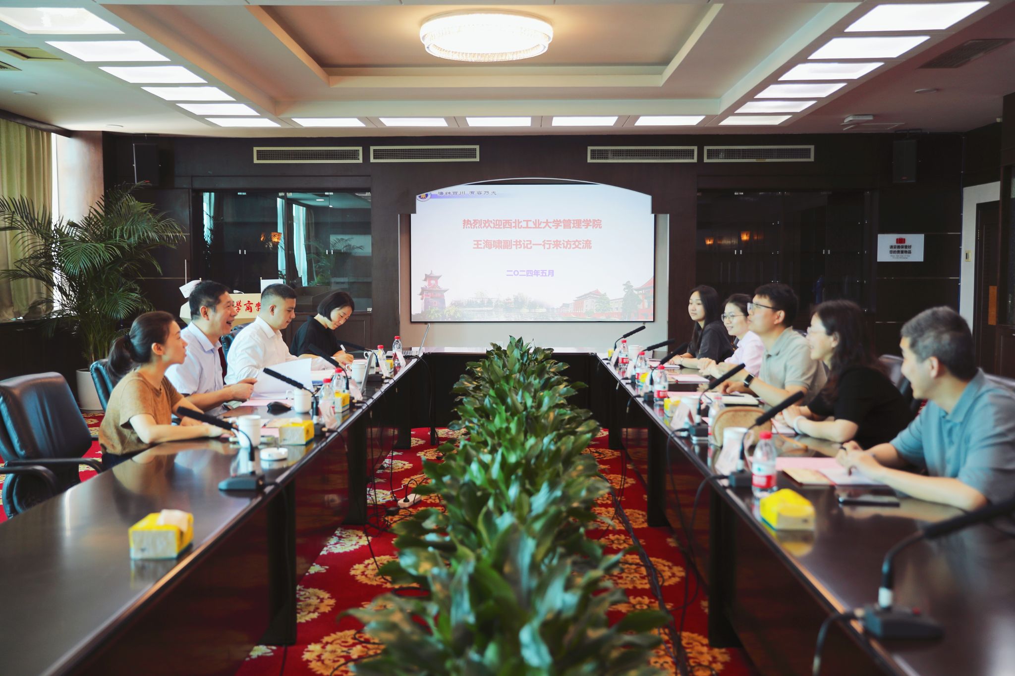 在电子科技大学经济与管理学院,党委书记李钰、副书记潘杨热烈欢迎王海啸一行到访,学生科科长黄善明、人事人才办公室主任刘蕊、学院办公室主任刘军、MBA教育中心学生事务管理李旭参加了座谈会。李钰全面介绍了电子科技大学经济与管理学院的发展情况,潘杨重点介绍了学生工作的典型做法和成效。双方围绕基层党组织建设、人才引进与考核、学生党建、创新创业教育、学生出国深造等方面进行了深入交流,取得了良好的效果。